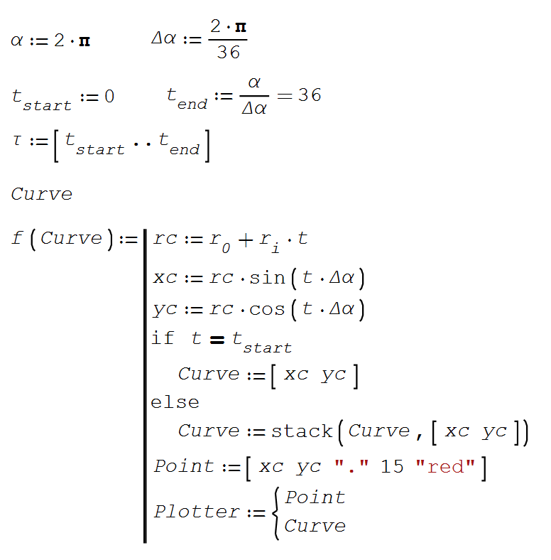 Theoretical background: When defining functions, it is possible to specify them in parametric form, the function variables can also be expressed with parameters of our choice. In this example, the x and y coordinates of the spiral curve must be written using the parameter t.