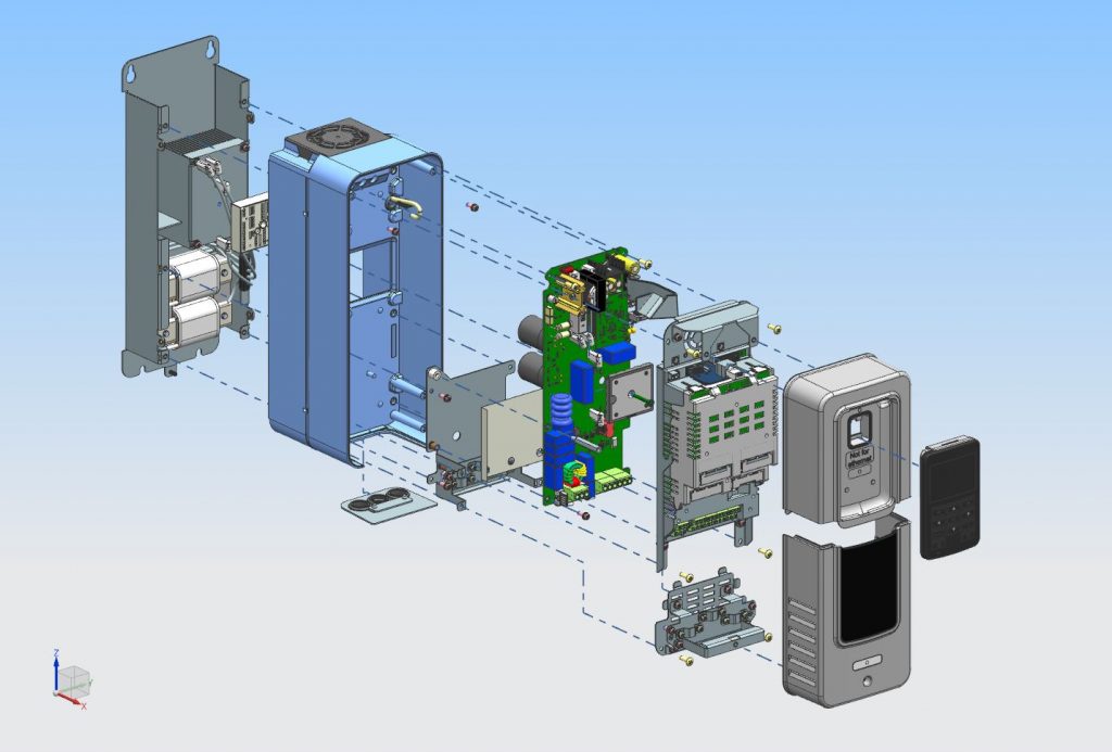 During development, specific components – including sheet metal parts, cables, conductive rails of different sizes and shapes and various injection-molded parts – had to be reviewed and optimized based on manufacturability and mountability (DFMA). During the development, we supported our partner from the concept to the beginning of series production.